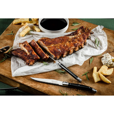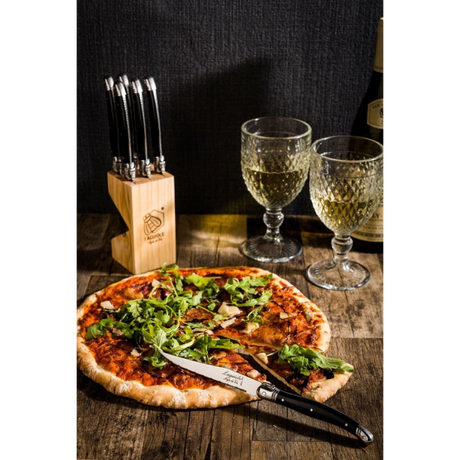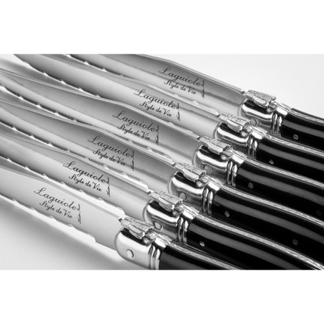 Steakmes Zwart set á 6 stuks in houten blok - Laguiole Style de Vie