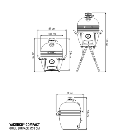YAKINIKU - Compact 13 inch Kamado Grill incl. draagbaar onderstel