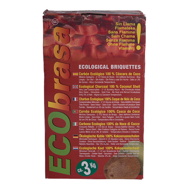 Deze briketten komen wat langzamer op temperatuur maar houdt deze temperatuur wel veel langer aan. Ecobrasa kokosbriketten kunnen na 80 minuten een maximale temperatuur bereiken van 600 graden. Dit bouwt daarna rustig af waarna de briketten het nog ongeveer 3 uur volhouden op lagere temperaturen. Doordat de Ecobrasa kokosbriketten gemaakt zijn van 100% Indonesische kokos, branden de briketten vrijwel asloos. Geen aangebrande stukken vlees meer omdat deze briketten alleen maar gloeien en niet branden met een vlam. Kokosbriketten geven nagenoeg geen aroma af. Daardoor zijn ze voor alle gerechten geschikt.
