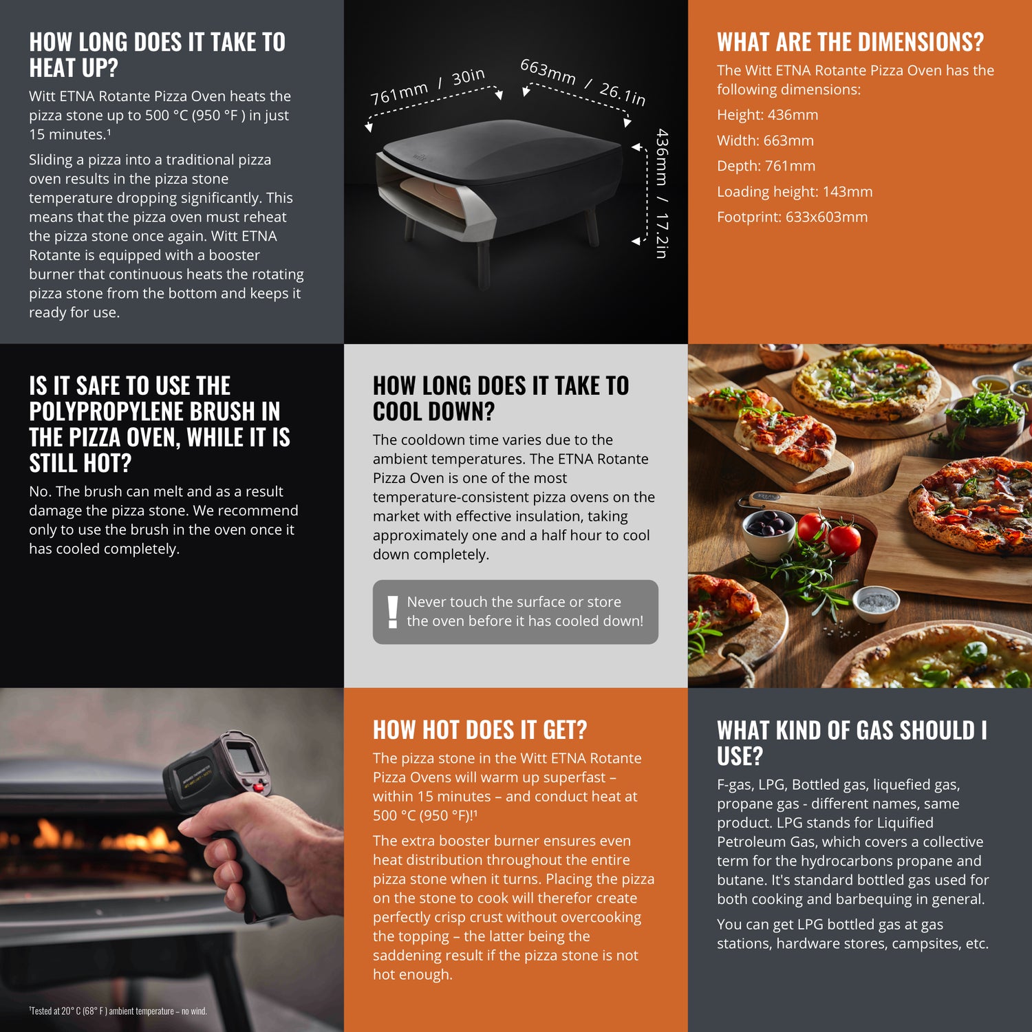 - Deze robuuste oven bereikt een indrukwekkende temperatuur van 500 graden in circa 15 minuten.