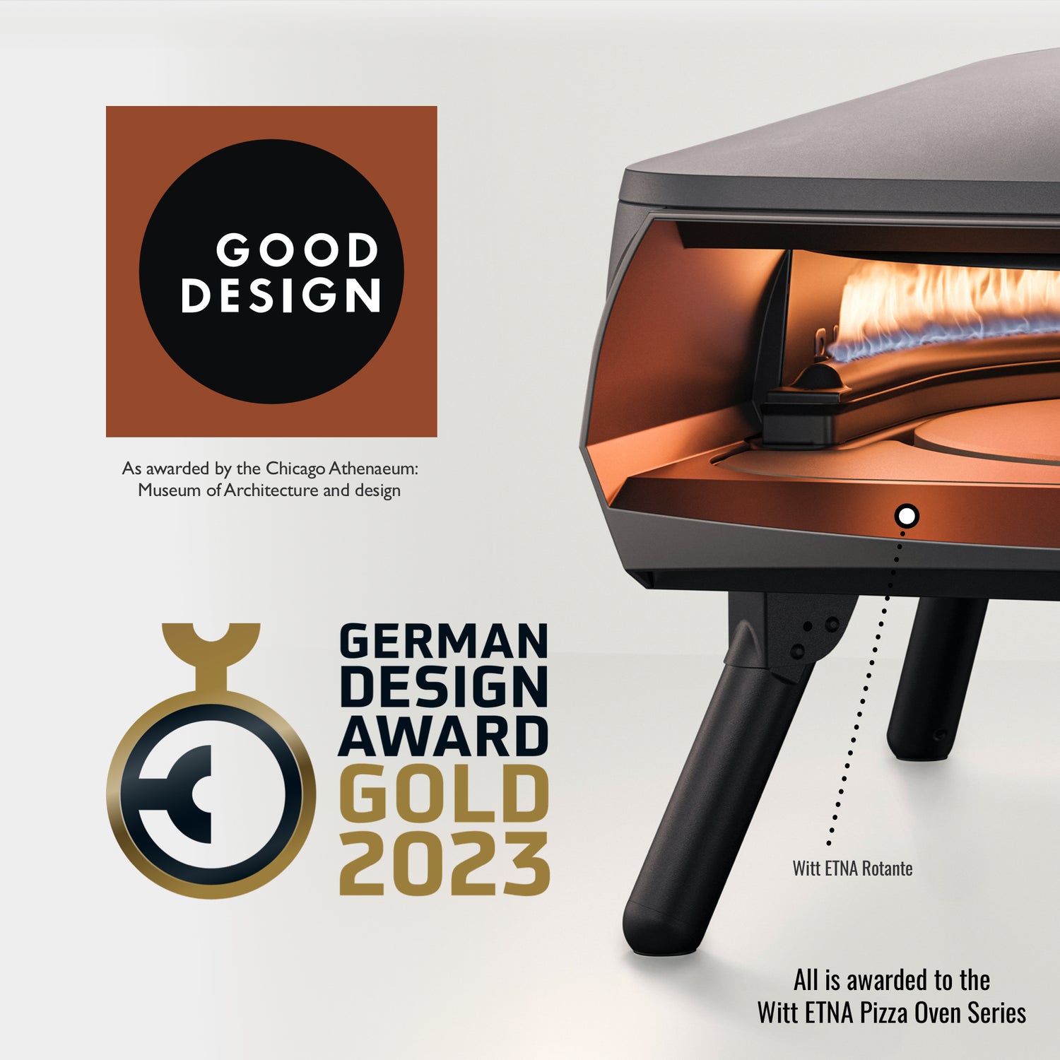 De Rotante pizzaoven op gas, van het Deense merk Witt, onderscheidt zich van andere pizzaovens met een draaiende bakvloer en een extra brander onder de bakvloer.