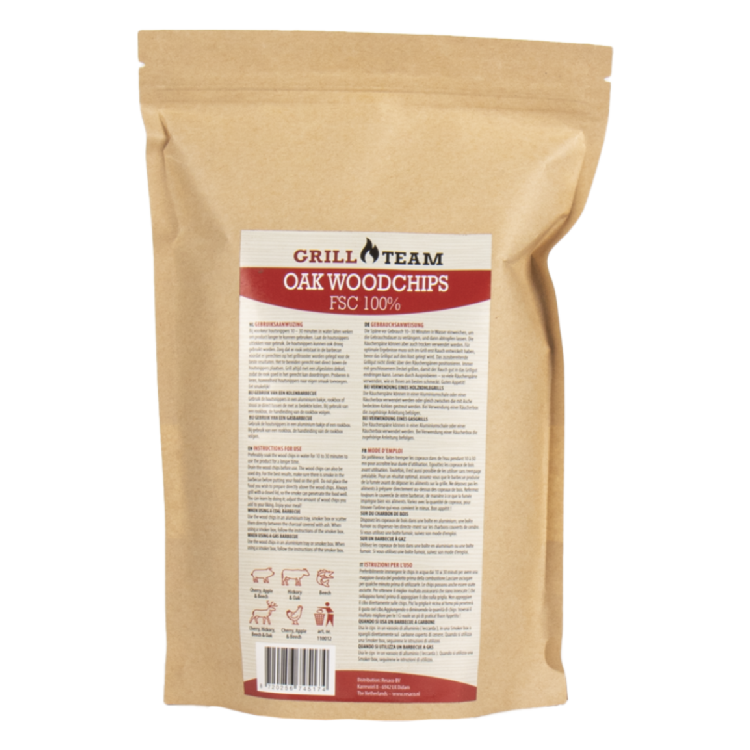 Dank der handlichen, kompakten Größe der Chips müssen Sie nur eine Hand ans Feuer legen, um Ihren Gerichten einen authentischen Rauchgeschmack zu verleihen. Diese einfache Dosierung ermöglicht es sowohl Anfängern als auch erfahrenen Grillern, problemlos den vollen, reichen Geschmack zu genießen, den Eichenholz jedem Gericht verleiht. Mit GrillTeam Oak Wood Chips können Sie jedes Grillgericht auf ein höheres Niveau bringen, ohne dass der Rauch die Aromen zu lange nachklingen lässt.