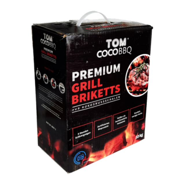 Tom Cococha-Briketts zeichnen sich durch eine sehr lange, gleichmäßige und heiße Brenndauer aus. Die Briketts haben eine rechteckige Form mit einer enormen Dichte, was zu einer sehr langen Brenndauer ohne Flammen führt und der Brikettkasten nur sehr wenig Platz einnimmt. Da die BBQ-Briketts von Tom Cococha aus reinen Kokosnussschalen hergestellt werden, verbrennen sie nahezu aschefrei.