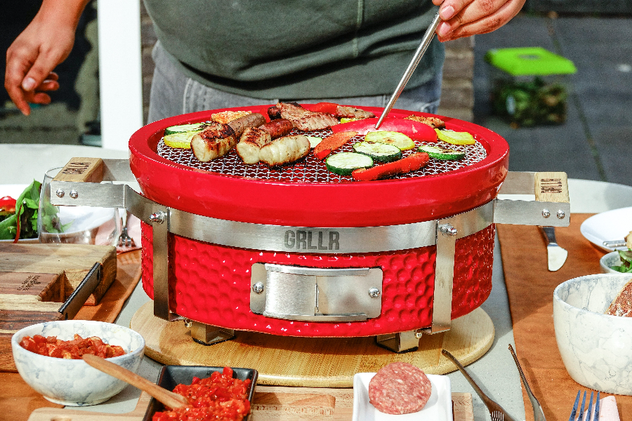 Dieser runde Grill verfügt über eine robuste Keramikkonstruktion, effiziente Wärmespeicherung und Belüftung für eine ideale Luftzirkulation und Temperaturkontrolle, perfekt für gemeinsame Momente mit Freunden und der Familie.