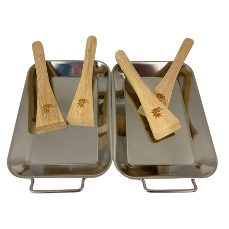 Ensemble de 2 poêles en acier inoxydable avec 4 grattoirs en bambou