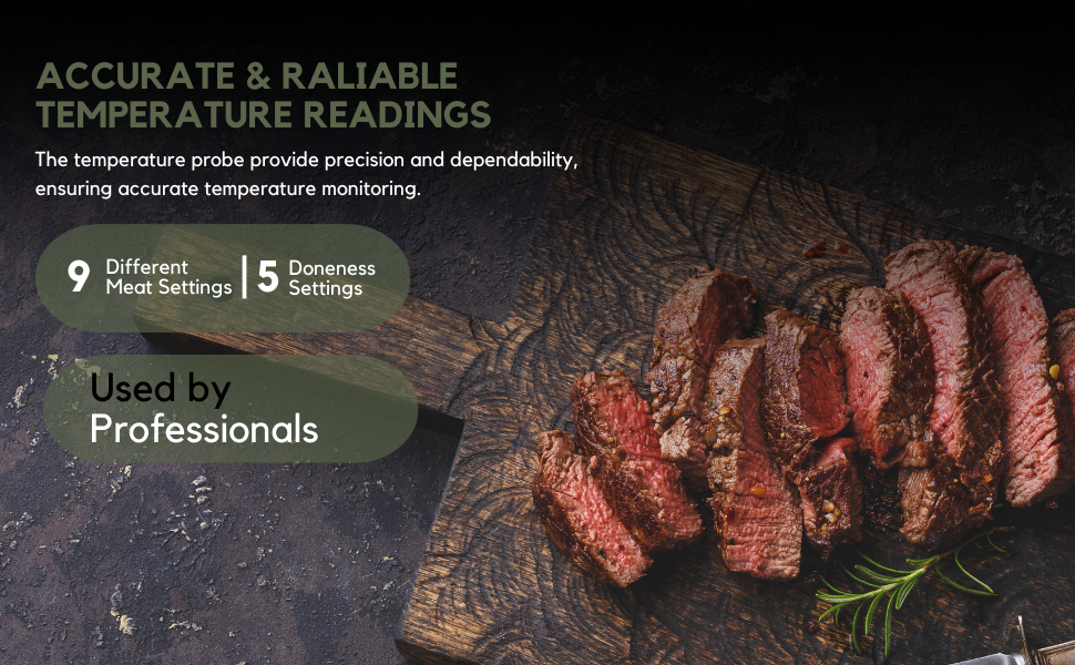 ✔ Selecteer vleessoort en gewenste gaarheid met handige voorinstellingen
